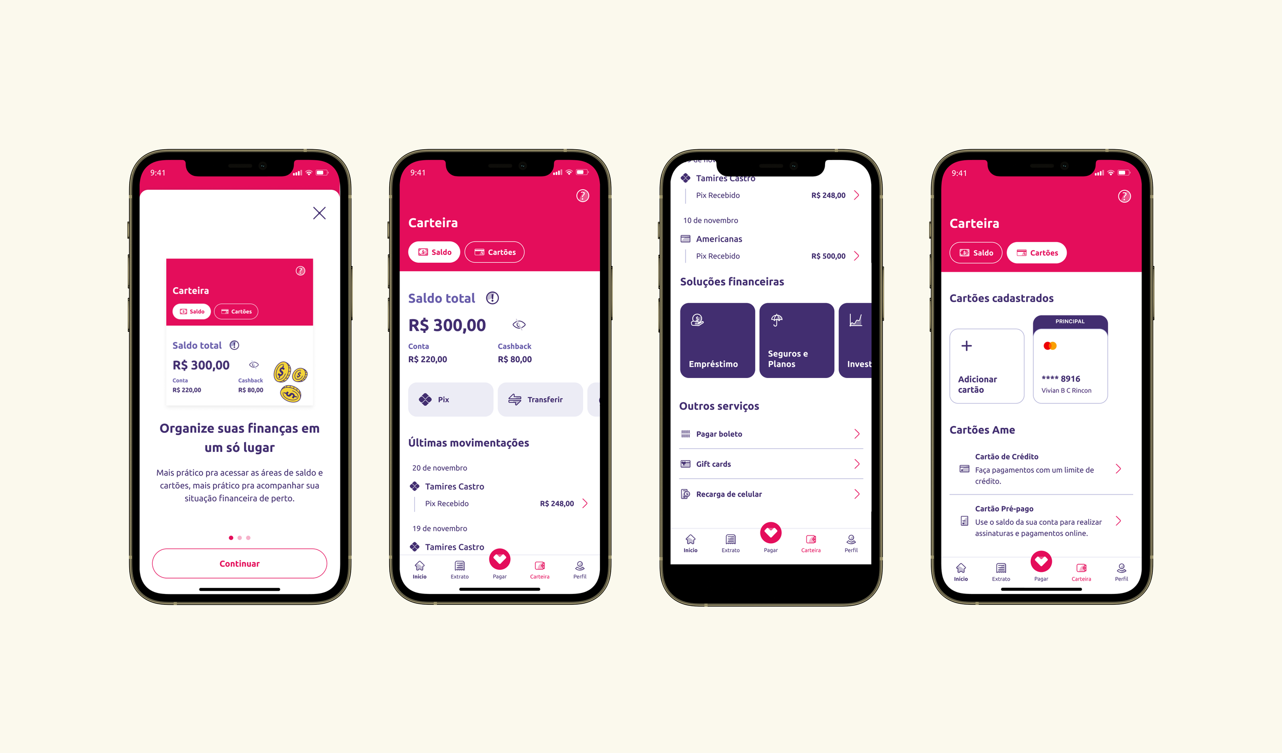 With a deep connection to e-commerce, Ame Digital prioritizes agility and innovation to meet evolving market demands. The redesigned experience aimed to improve navigation, increase accessibility to essential services like credit cards and cashback. Strategic adjustments were made to simplify financial interactions and improve user engagement, aligning with Ame’s mission to offer a frictionless digital finance experience.